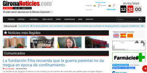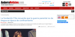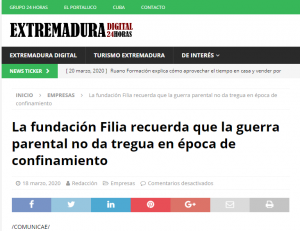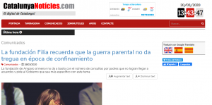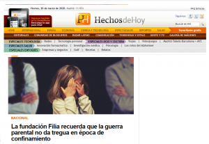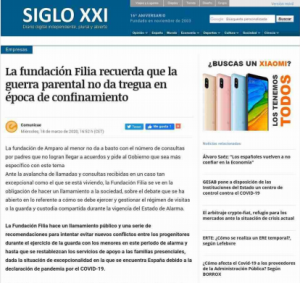 Queremos dar las gracias a todos los medios de comunicación que ayer se hicieron eco del comunicado de Fundación Filia sobre el debate que se ha abierto en lo referente a cómo se debe ejercer y gestionar el régimen de visitas o la guarda y custodia compartida durante la vigencia del Estado de Alarma; gracias por ayudarnos a difundir las recomendaciones de Filia, pensando en el bien de los menores.